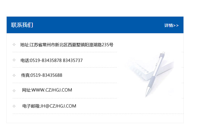 傳真:0519-83435688    郵編:213135    網址:WWW.czjhgj_com.yctalk.com    電子郵箱:JH@czjhgj_com.yctalk.com